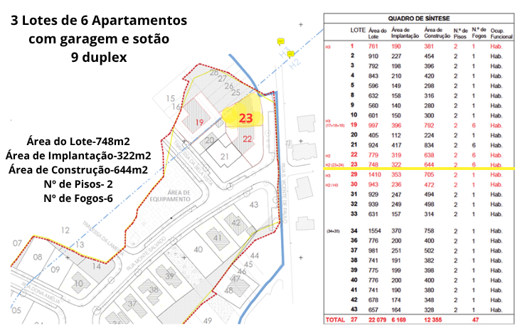 3 Lotes de 6 Apartamentos com garagem e sotão 9 duplex